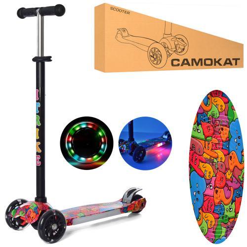 Дитячий триколісний самокат maxi JR 3-052-1-WP4, чорного кольору з підсвічуванням